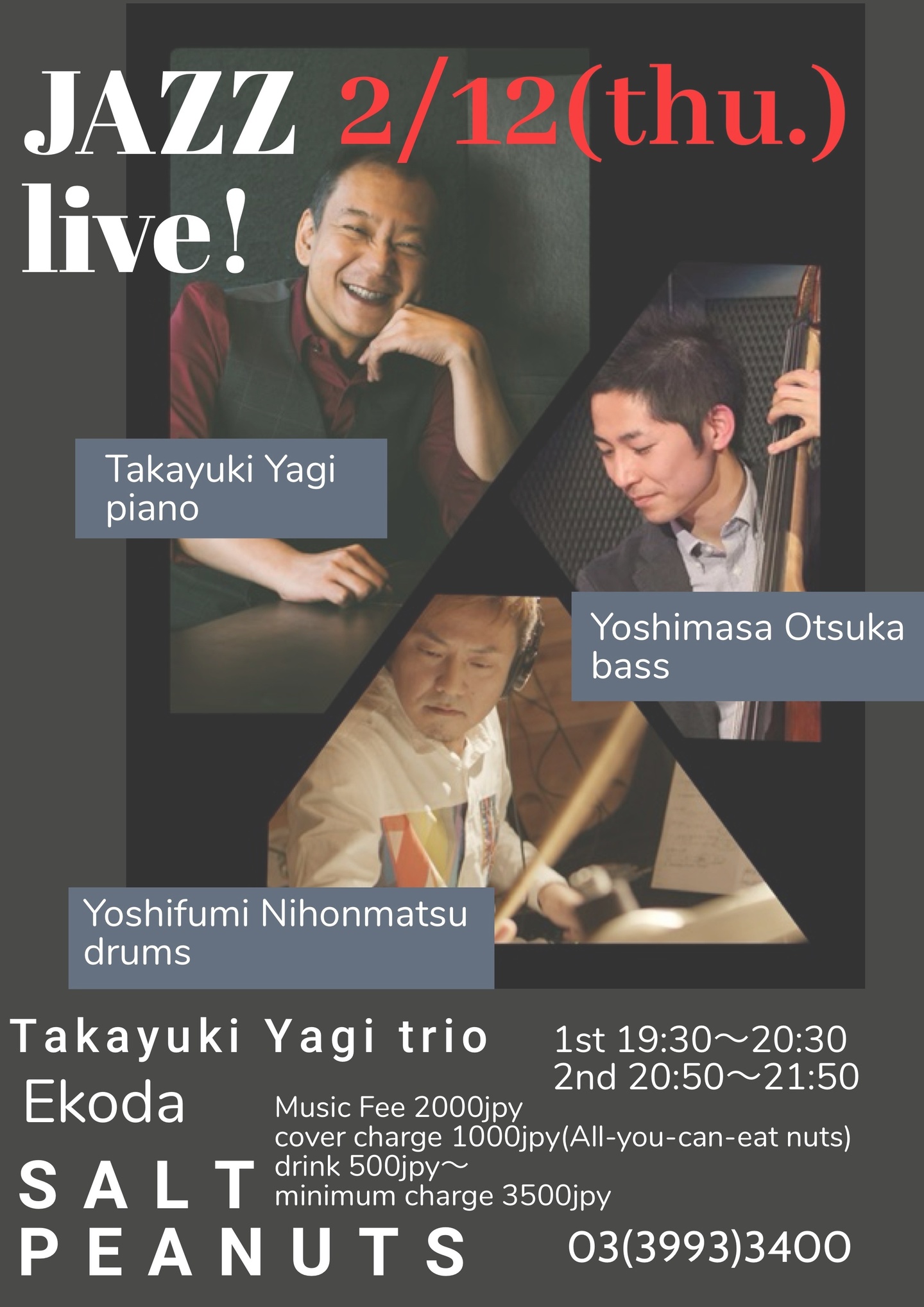 2/12(木) 江古田そるとぴーなつ 八木隆幸(p)大塚義将(b)二本松義史(d)